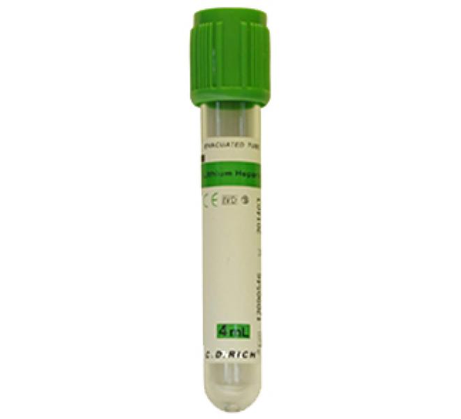 Пробірка містить натрій гепарин, осаджений на стінках. Гепарин - натуральний антикоагулянт прямої дії, який не впливає на іонну силу крові. Результат - негемолізована цільна кров або плазма (після центрифугування).