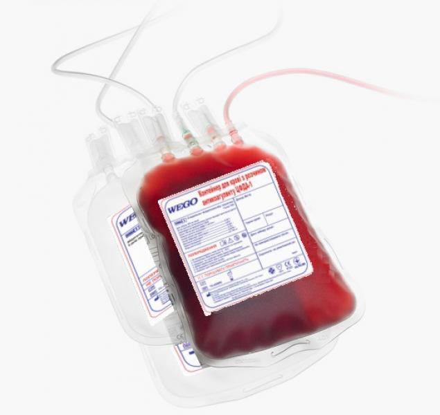 Пластиковые контейнеры для крови человека и её компонентов с раствором антикоагулянта ЦФДА-1 (CPDA-1) тройные одноразового использования стерильные WEGO, 250 мл с аксессуарами, предназначенны для сбора и разделения цельной крови на три компонента, плазму, эритроциты и тромбоциты, путем центрифугирования и экстракции.